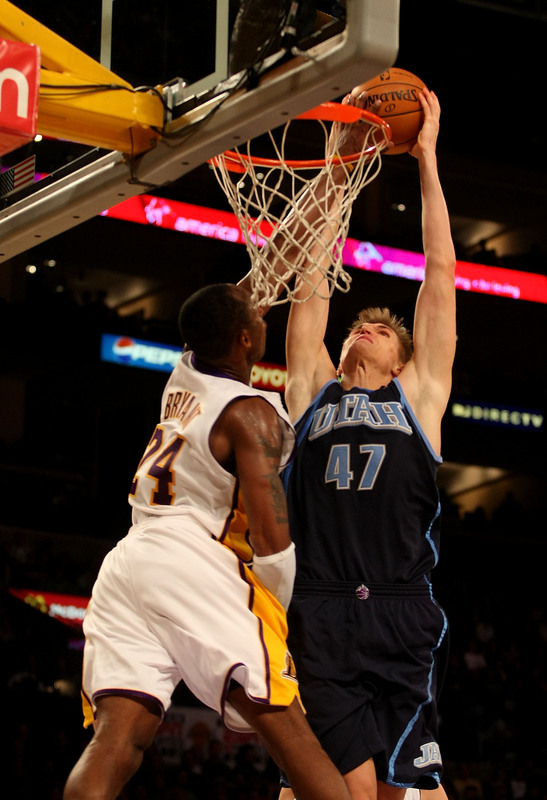 湖人在一開賽其實稱不上順暢,但是藉由防守的轉換,他們仍然擁有競爭力。儘管如此,Okur 一而再、再而三的攻擊,事實上對於較善於防守低位的 Kwame Brown 造成了極大的困擾。所幸這個狀況並沒有持續很久,Okur 在自己也陷入犯規麻煩之後,失去了攻擊的破壞力,從第二節開始他幾乎是個隱形人,反觀湖人從板凳上來的 Andrew Bynum 就越打越順,一樣都是六犯離場,態度卻是大大的不同。